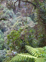 After all this, it was about time for lunch, so we returned to the lodge. Sometime today we saw a Red-tailed Squirrel (Sciurus granatensis) around the lodge. This is the red-tailed squirrel that occurs in Ecuador west of the Andes. The feeders had Collared Inca, White-necked Jacobin, and Purple-bibbed Whitetip. On the way back down to the bus after lunch, we found Red-billed Parrot, Red-eyed Vireo, Golden-crowned Flycatcher, and Marble-faced Bristle-Tyrant.
