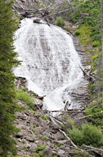 When I arrived at the Hellroaring Creek trailhead, I was distracted by several birds, including a Rock Wren and a woodpecker. The woodpecker took some tracking down. It turned out to be a female Williamson's Sapsucker (one of the more confusing ID's). I finally hit the trail at about 9am. It descends to suspension bridge over the part of the Black Canyon of the Yellowstone. It then enters the “Enchanted Forest”. I heard an unfamiliar call as I entered the forest. Somehow, Clark's Nutcracker popped into my head, and that's what it turned out to be. Many other birds were singing here and elsewhere in the treed sections. The rest of the way the trail crosses open meadows (with a detour around a dry pond) to Hellroaring Creek.