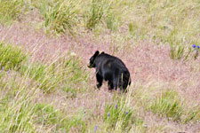 I then drove out to the Lamar Valley to see if I could locate a carcass where bears and wolves have been feeding. No luck. Driving back to Mammoth, I looped back over the Blacktail Plateau Drive and then to the Petrified Tree (where I spent more time with the wildflowers). Saw another bear (tying last time) on the way back to Mammoth. Got my cottage with some difficulty. They gave me the wrong key! This is the second time this trip (first time in Great Falls). Uinta Ground-Squirrels are all over Mammoth. There's a entrance to their burrow right under my cabin porch. Checked out the area, and drove the upper terrace loop. By then, the restaurant was open for dinner (5pm), so I ate.